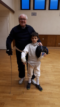 Nach überstandener Theorie folgte dann die Praxis. Jeder Prüfling musste ein Übungsgefecht gegen Christoph Irsch absolvieren und dabei die Sixt-, Quart-, Oktav- und Septim-Paraden vorführen. Am Ende eines anstrengenden Nachmittags konnte Jonas zusammen mit allen anderen Teilnehmern stolz seinen Fechtpass entgegen nehmen.
