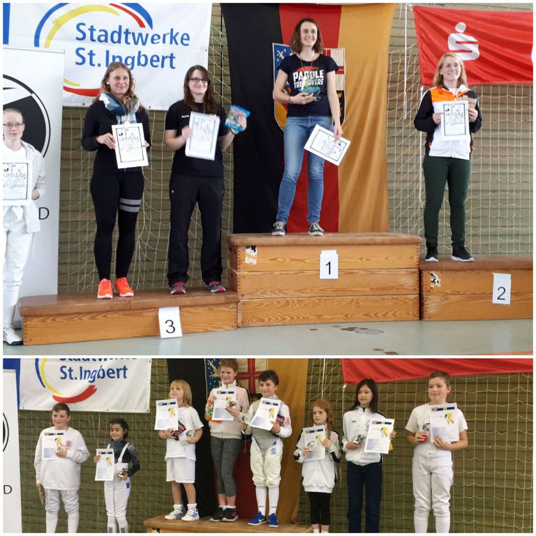 Fünf Florettdamen, darunter eine Fechterin aus Kaiserslautern und eine aus Alzey, kämpften samstags um den Meistertitel. Die Dillingerin Victoria Groß stand nach der Vorrunde auf Platz 2 und hatte daher im Viertelfinale Freilos genau wie die an 1 stehende Sarah Reeb aus Kaiserslautern. Reeb gewann im Halbfinale gegen Danielle Trittelvitz vom ausrichtenden Verein. Victoria konnte ihr Gefecht gegen die Pfälzerin Blass erfolgreich beenden. Im Finale hieß es nun Groß gegen Reeb, eine Paarung, die schon eine lange Tradition bis in die B-Jugend-Turniere zurück aufweist. Letztlich musste Victoria Groß sich der Kaiserslauterner Fechterin geschlagen geben. Sarah Reeb belegte den 1. Platz bei den offenen Landesmeisterschaften, Victoria Groß wurde beste Saarländerin. Blass und Trittelvitz belegten gemeinsam den 3. Platz, Winona Marx aus Holz wurde Fünfte.