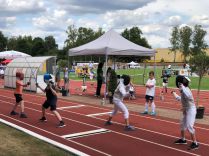 Die jungen Sportler der Fechtsportgemeinschaft nutzten unter den wachsamen Augen ihres Trainers Elias Leg die Tartanbahn für ihre Freigefechte. Elias zeigte interessierten Besuchern, wie eine sogenannte Lektion, d.h. ein Einzeltraining im Gefecht mit dem Trainer, durchgeführt wird. Die jungen Fechtsportinteressenten konnten sich über die verschiedenen Waffen Florett, Degen und Säbel informieren und lernten die Unterschiede kennen. Natürlich konnte auch jeder, der wollte, die Waffen einmal selbst in die Hand nehmen.